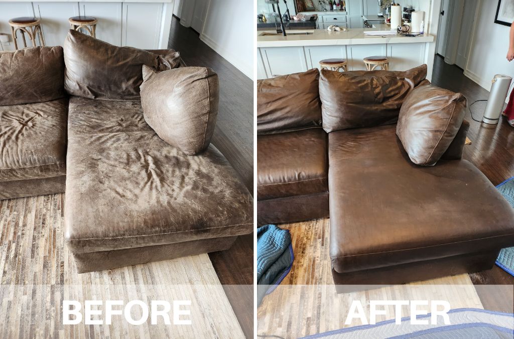 Our skilled technicians use high-quality dyes to deliver vibrant, long-lasting results tailored to your style. Explore how our leather dyeing services can transform your sofa with stunning, customized color solutions.
